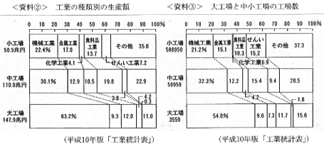 | 1 生産額がもっとも多い工業地帯は,京浜工業地帯である。 2 中小工場では,大工場で使う部品をつくっている。 3 日本の工業の中心は,機械工業である。 4 自動車の輸出が増え,機械の生産額も増えている。 |