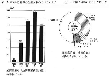 | のぼる: | 「わが国の平成11年の自動車の生産台数は,昭和45年と比べて,およそ(ア)倍になっているよ。」 |