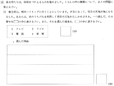 | (2) 資料AとBにもとづく意見はどれですか。一つ選んで,その番号を□の中に書きなさい。 | |