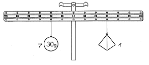 | 9 正子さんが,下の図のようにてこ実験器の左右におもりをつるしたら,つり合いました。 | ||